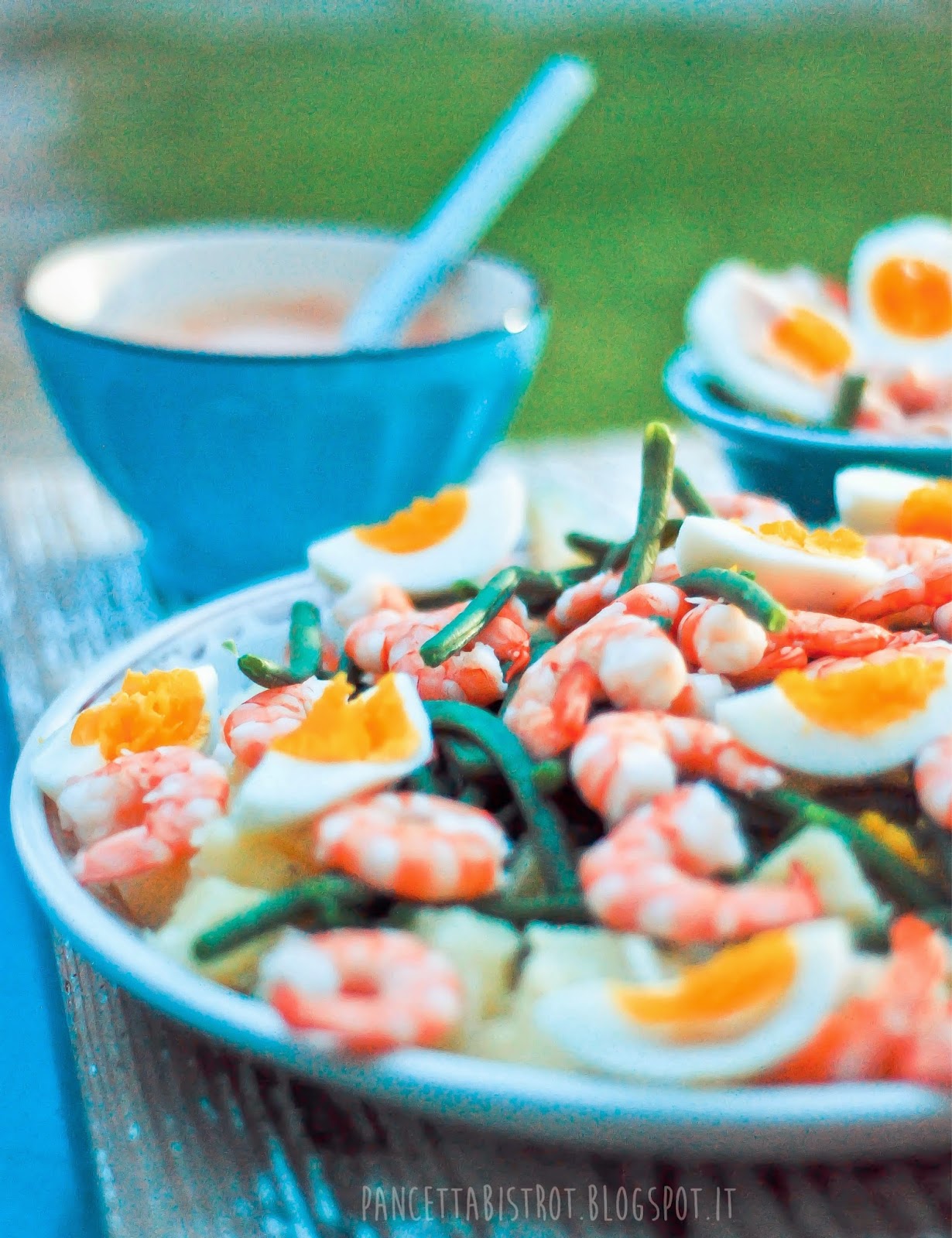 preparo spesso patate fagiolini e uova, ma non mai pensato ad unire anche i gamberi, sicuramente una marcia in più, un bacio